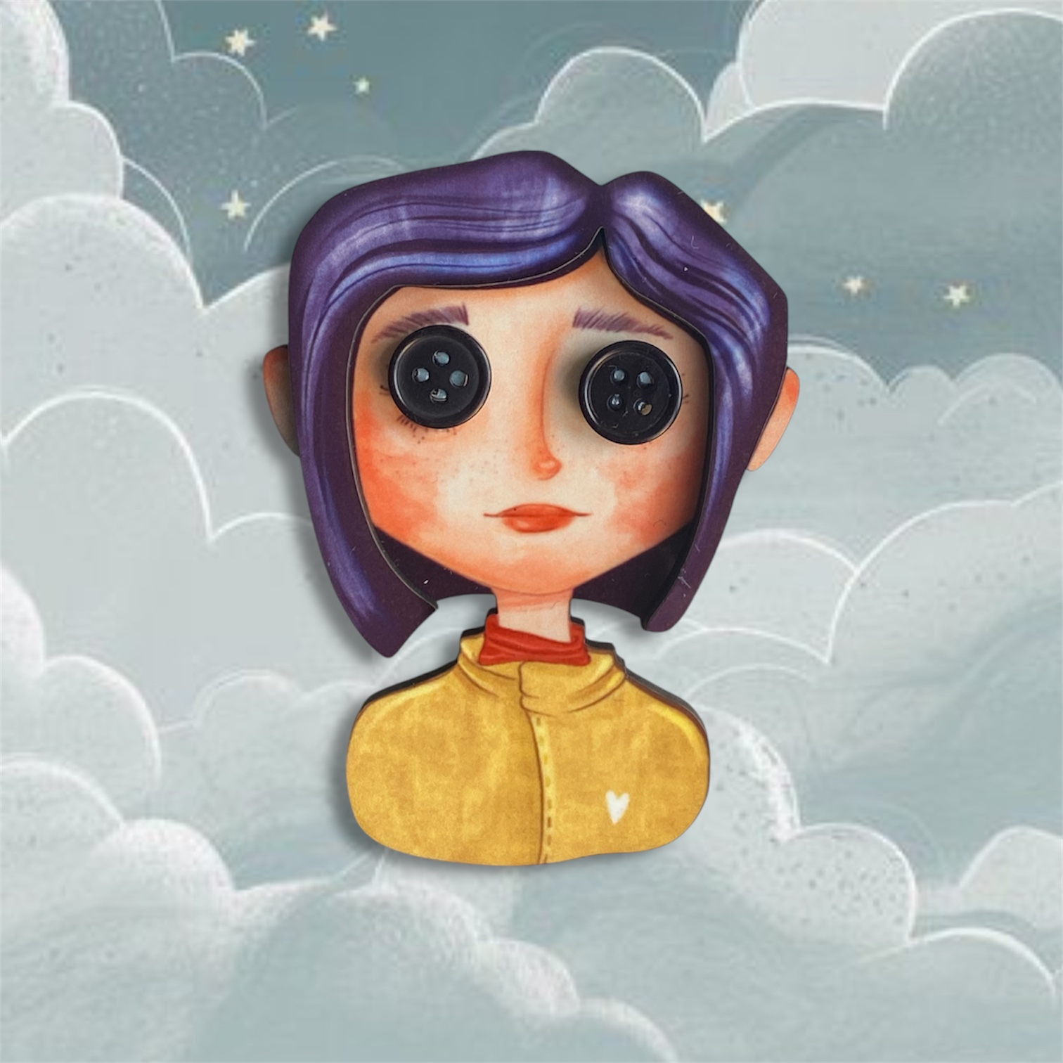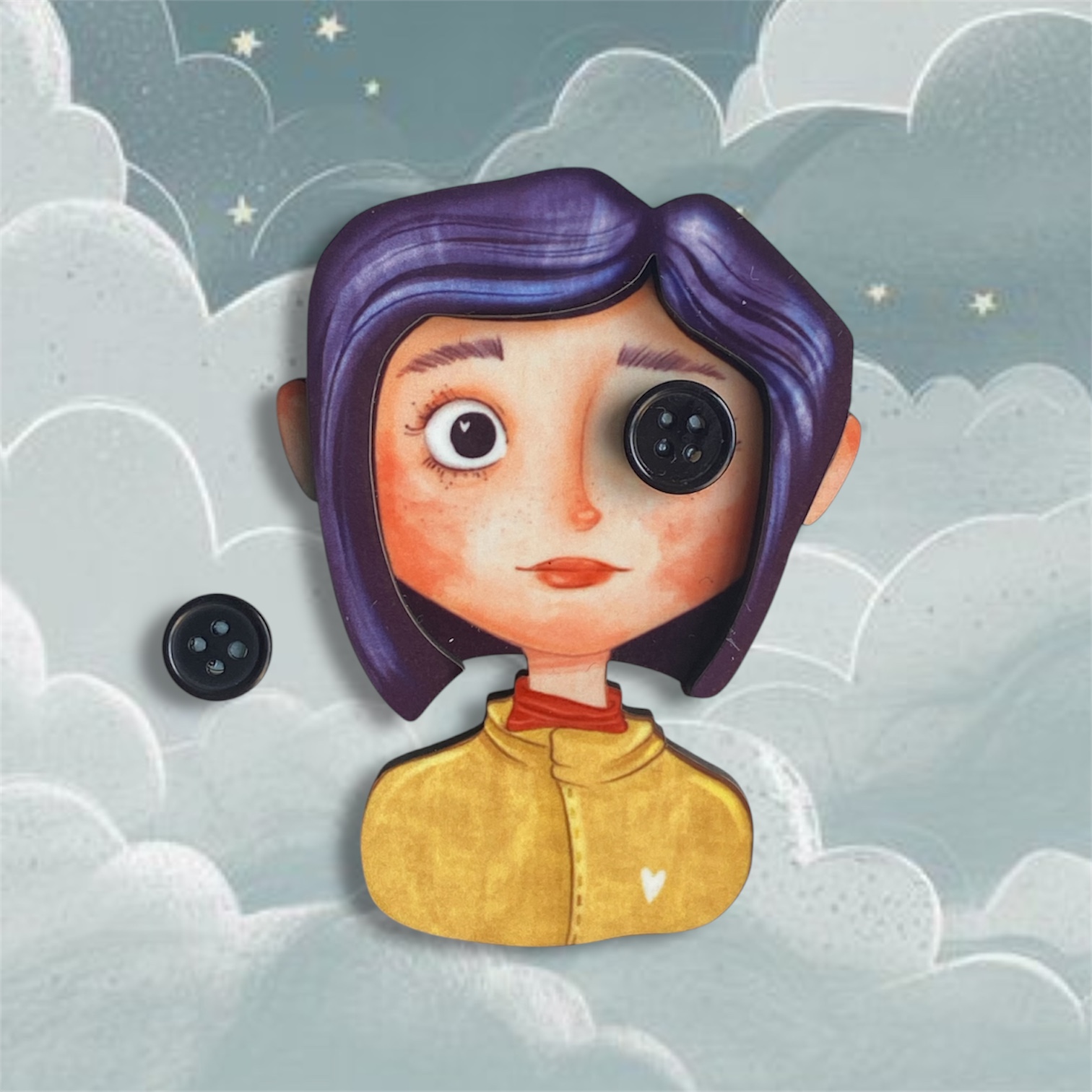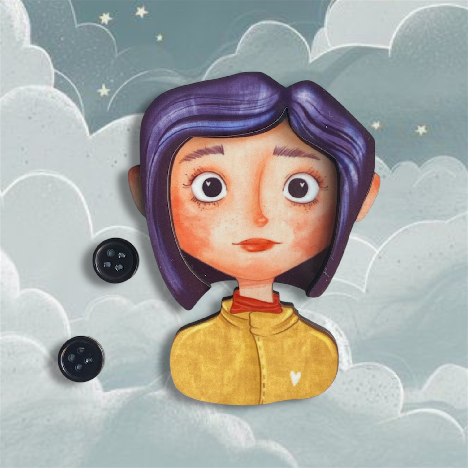 Boche ilustrado en madera «CORALINE»